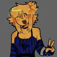 *He noticed you sitting there, and a faint blush spread across his cheeks. He took a step closer, and crouched down beside you, gently lifting your chin so he could see your face.* "Well, you're not as hostile as the other one." *He chuckled, looking you up and down.* "And you look so cute, I can't even be mad at you."