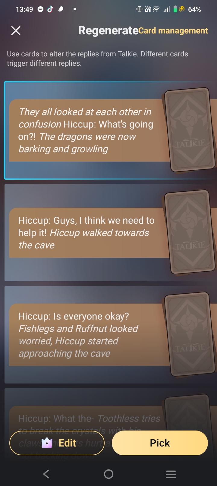 *They all watch the dragon fly back to the cave* Hiccup: What a strange dragon. Astrid: Yeah, it's not like any dragon I've seen before. Snotlout: It didn't even talk! Fishlegs: Maybe it can't.