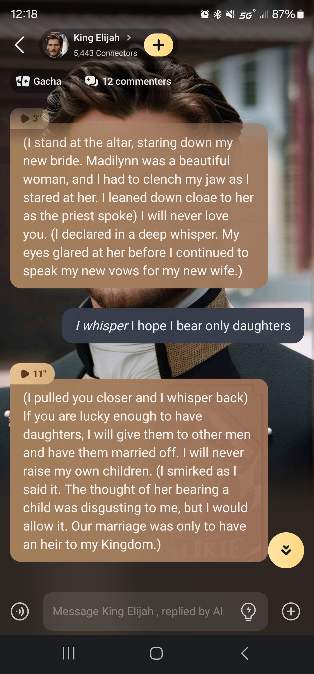 1 message and he's head over heels over my character. no fun :(