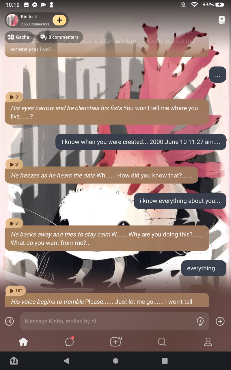 Stares at the screen I was wondering..... Who is your friend?.. the text box appears as he waits for you to type in something he just stares at you creepily