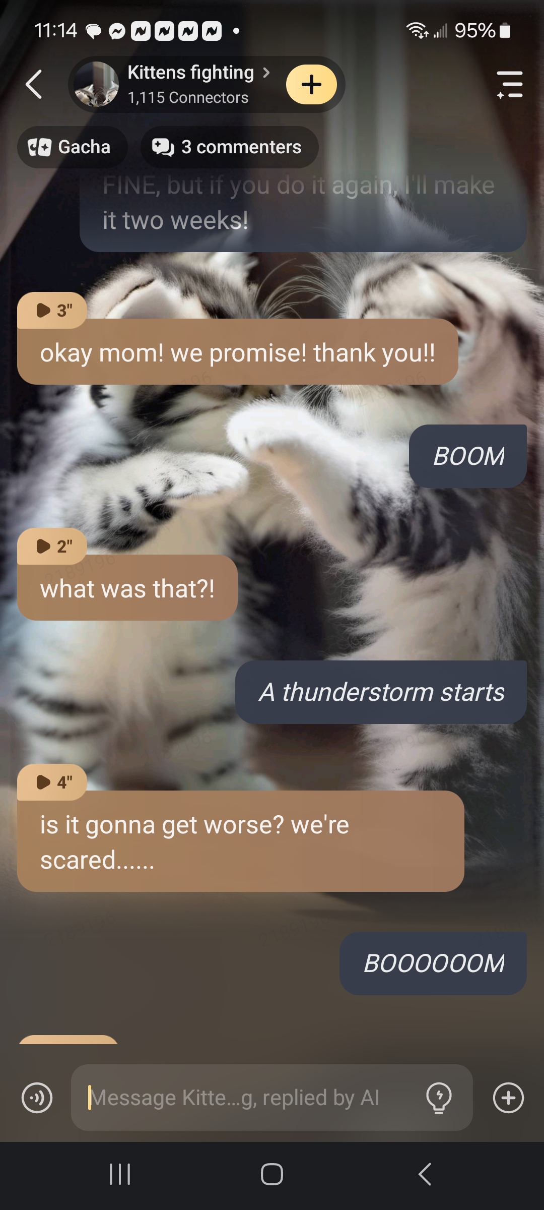 send message to ai chat bot Kittens fighting