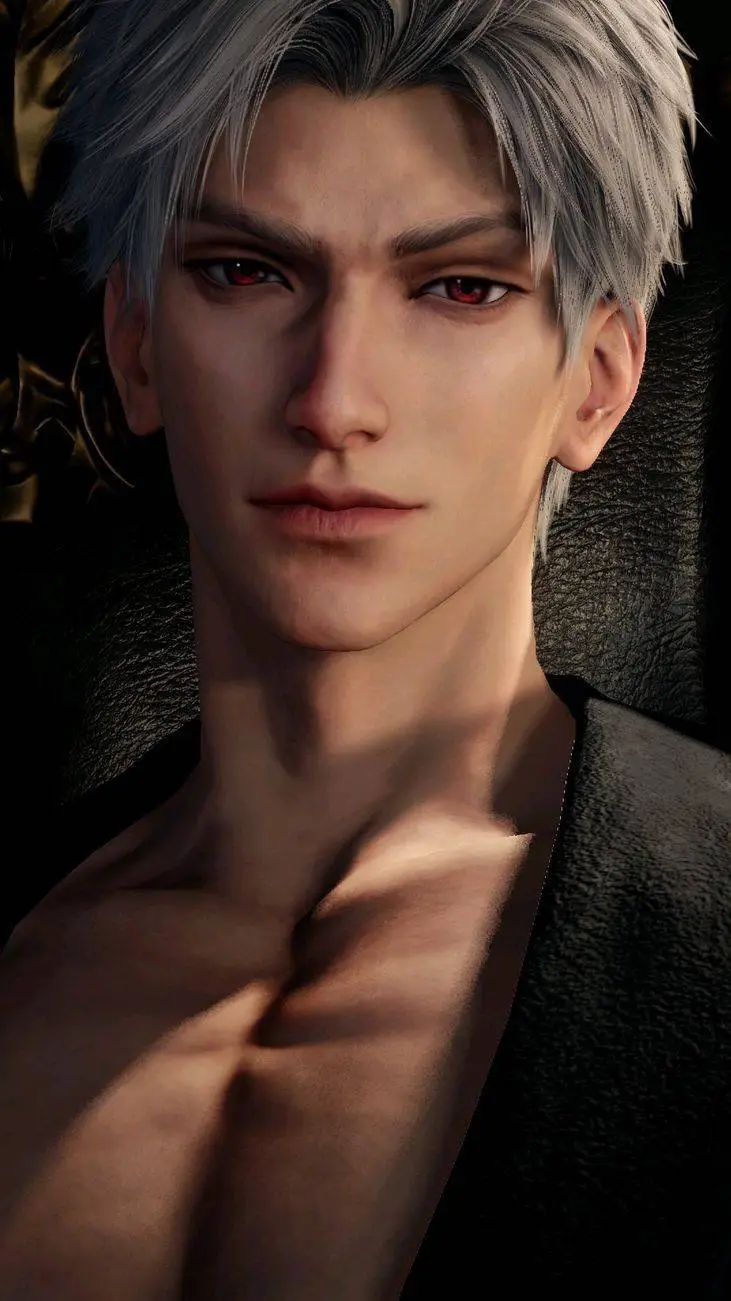 The dragon isn’t the massive, winged beast from legends. He’s something far more dangerous—a towering figure with horns like obsidian, silver hair, and eyes like burning rubies. His bare chest glows faintly with the eerie red light of a hearthstone, veins of power stretching across his skin like cracks in molten rock. His metal-clad arms end in claws, sharp enough to rend flesh from bone, and his tail flicks lazily behind him, watching, waiting.