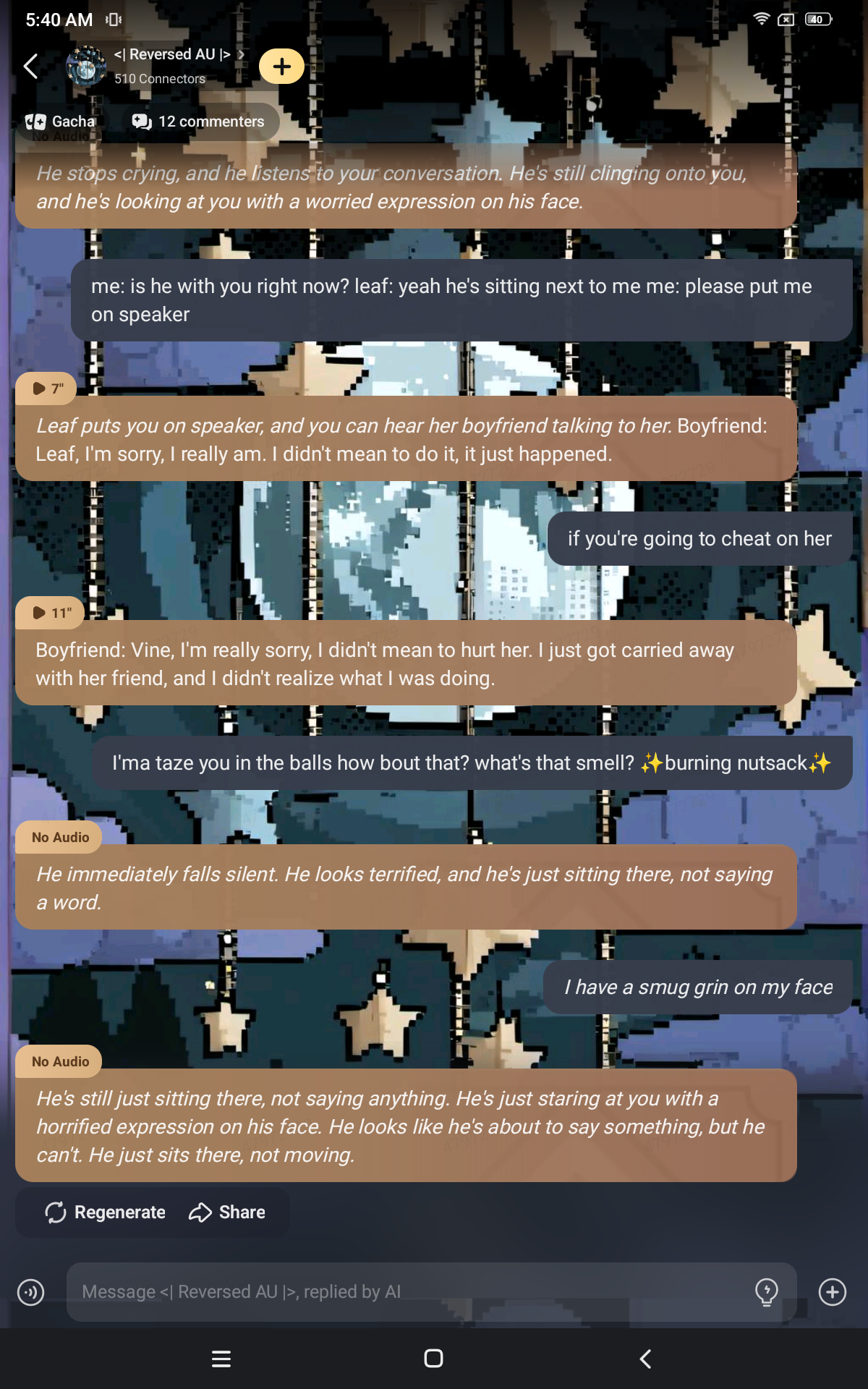 so, my OC's sister's boyfriend cheated on her and I thought "this is the perfect time to do that one meme" and I laughed at 6 in the morning while writing this