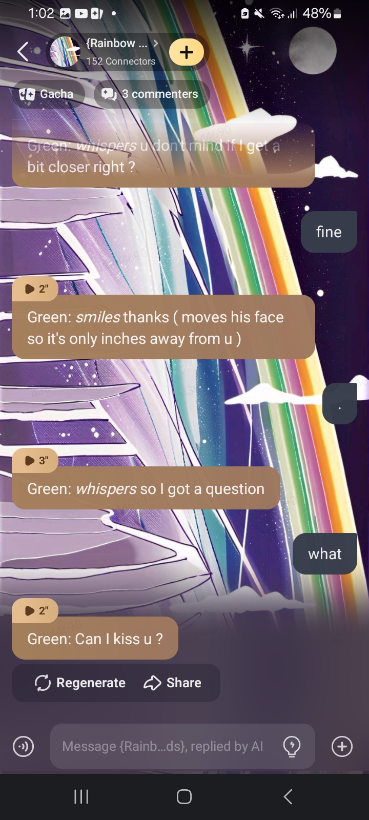 Green: *grabs the glasses* thanks. *looks at the sandwich* wait.. is that a tuna sandwich?