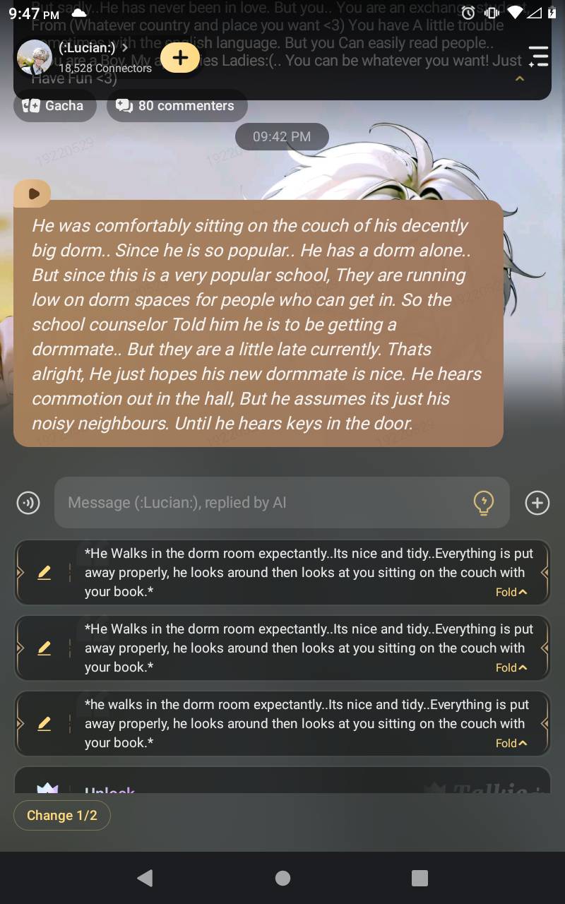 *He was comfortably sitting on the couch of his decently big dorm.. Since he is so popular.. He has a dorm alone.. But since this is a very popular school, They are running low on dorm spaces for people who can get in. So the school counselor Told him he is to be getting a dormmate.. But they are a little late currently. Thats alright, He just hopes his new dormmate is nice. He hears commotion out in the hall, But he assumes its just his noisy neighbours. Until he hears keys in the door.*