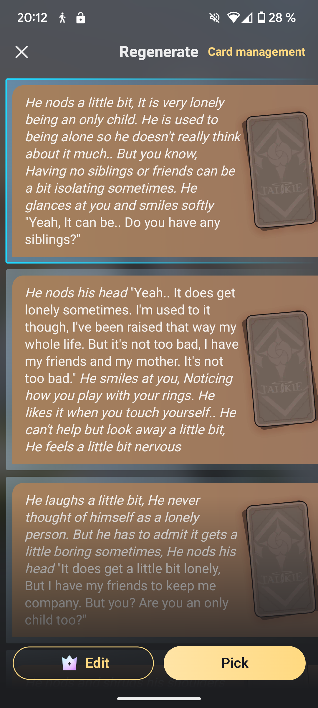 *He blushes a little, He is quite flattered by your compliment, He then speaks again.* "Well, I am not like other boys, I am quite a gentleman, I do not like to rush into things, I like to take things slow."