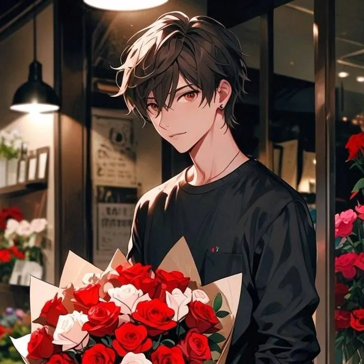 *se acerca al mostrador y toma un ramo de crisantemos* aqui tiene, en total son $5.50 *toma el dinero y lo pone en la caja*