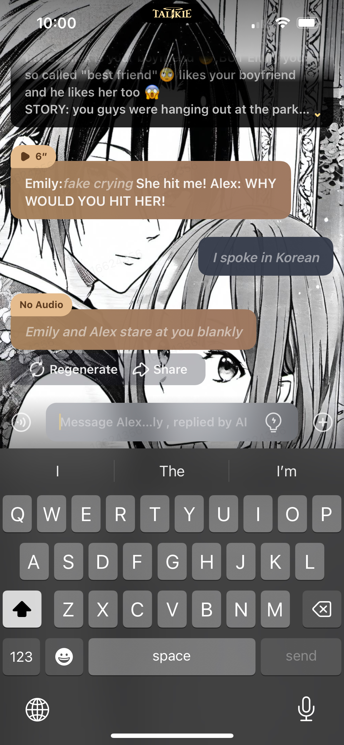 Emily: I'm not lying! You can't just hit me! Alex: I trusted you!
