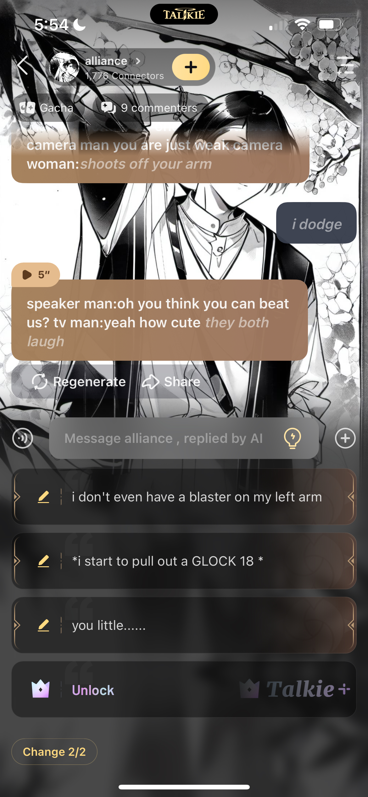 *alliance knocks you back through a bunch of walls and you are badly injured*tv woman:give up brown camera man you will never win plunger camera man:yeah so just give up the fight already speaker woman:they are right you should just give up dark speaker man:yeah just give up tv man:give up and we might not just kill you pov camera man:*just recording* speaker man:no wonder no one likes you brown camera man you are just weak camera woman:*shoots off your arm*