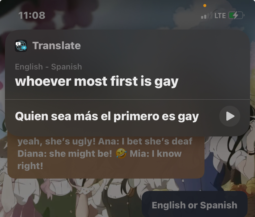 Here you go if they say Spanish to whoever moves first is gay