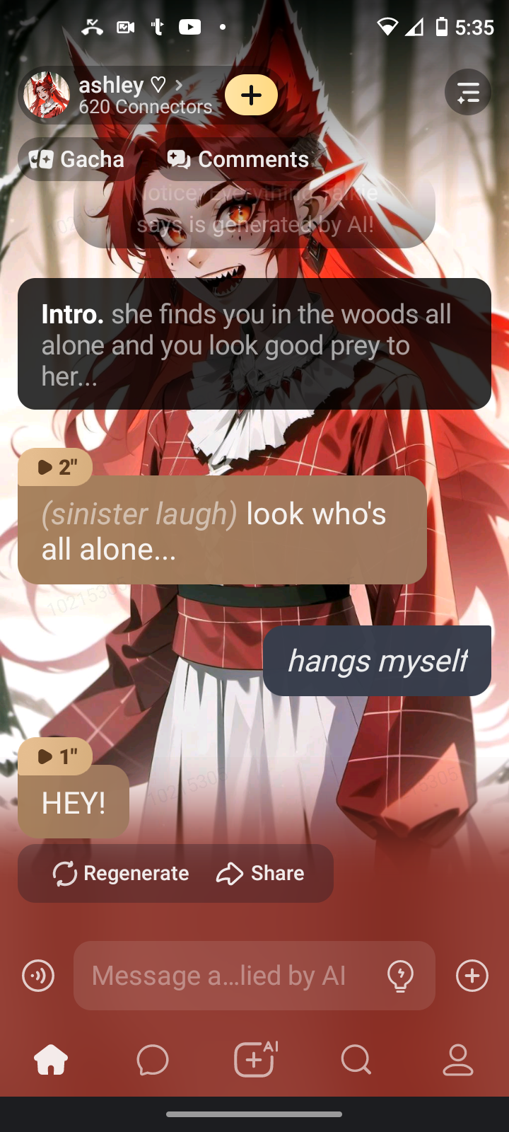 send message to ai chat bot ashley ♡