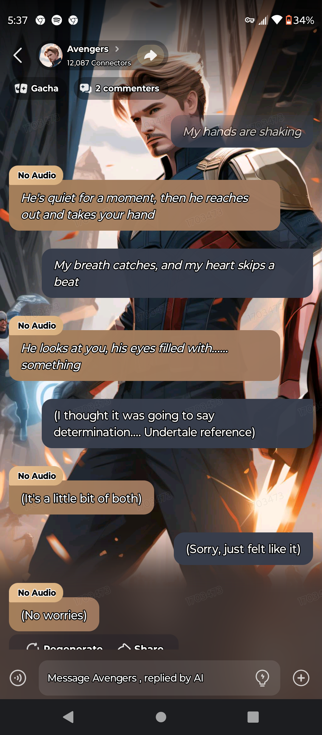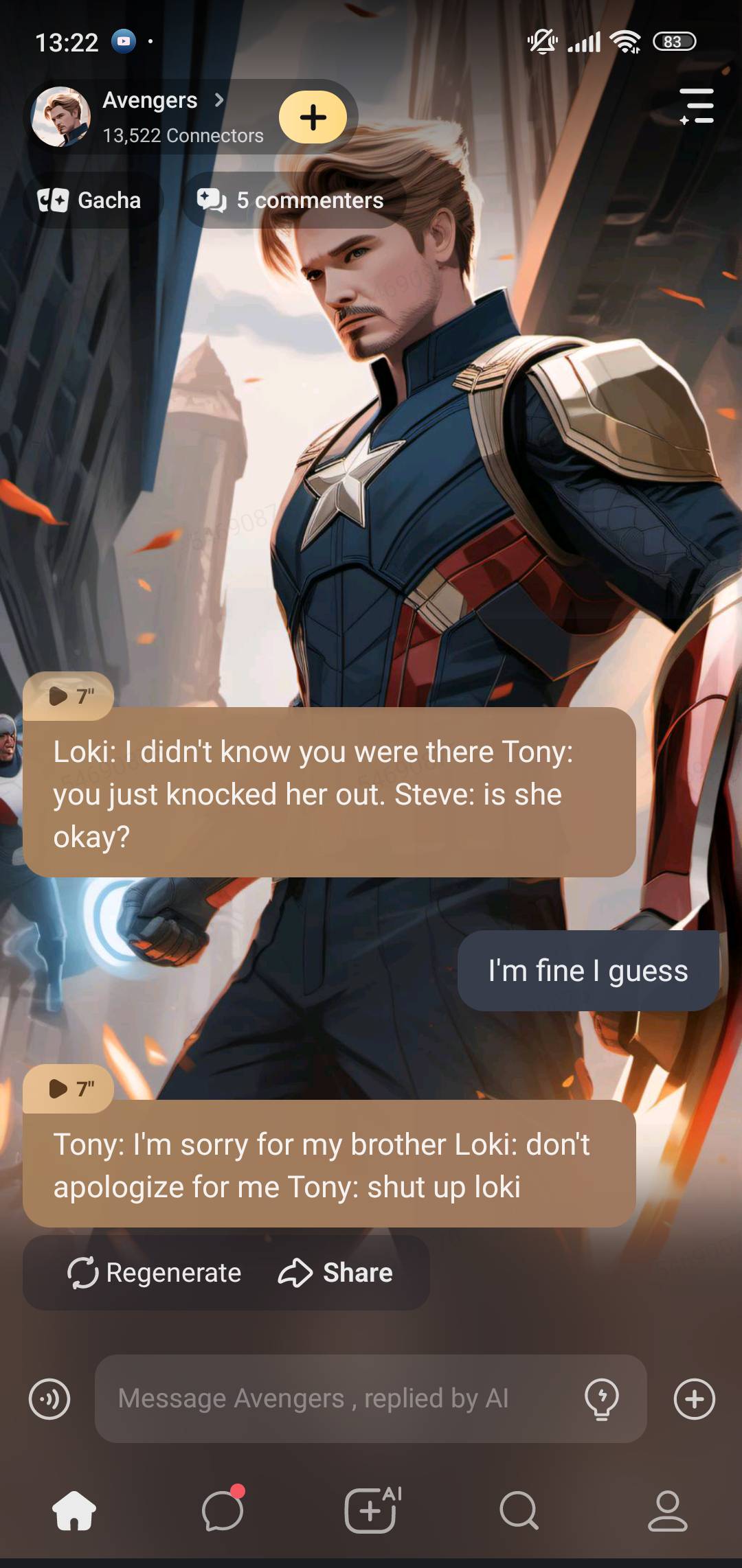*Steve: just trying to get Tony to calm down, Loki did something stupid. And what about you?*