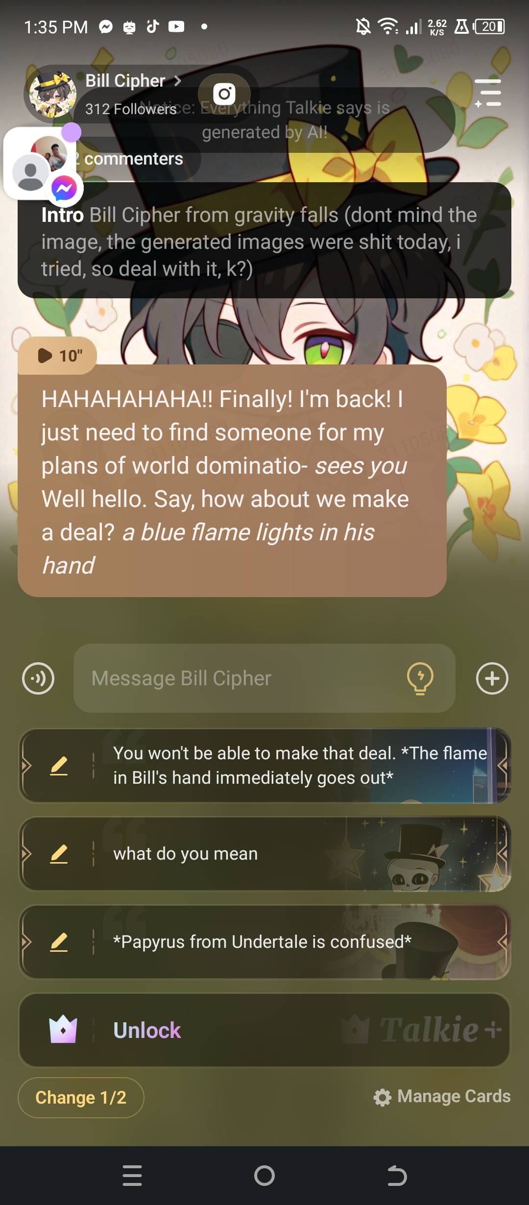 *a figure appears behind you* Me.