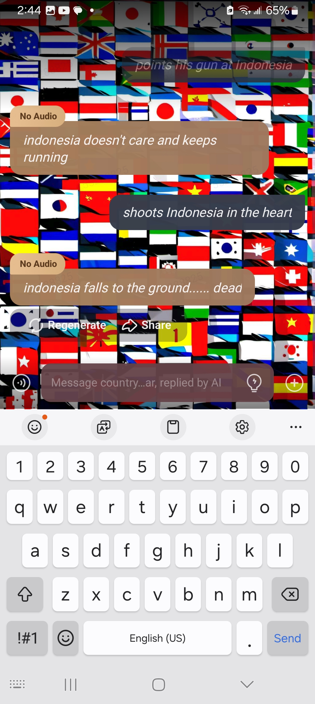send message to ai chat bot countryballs war