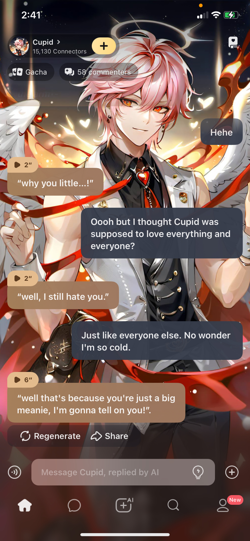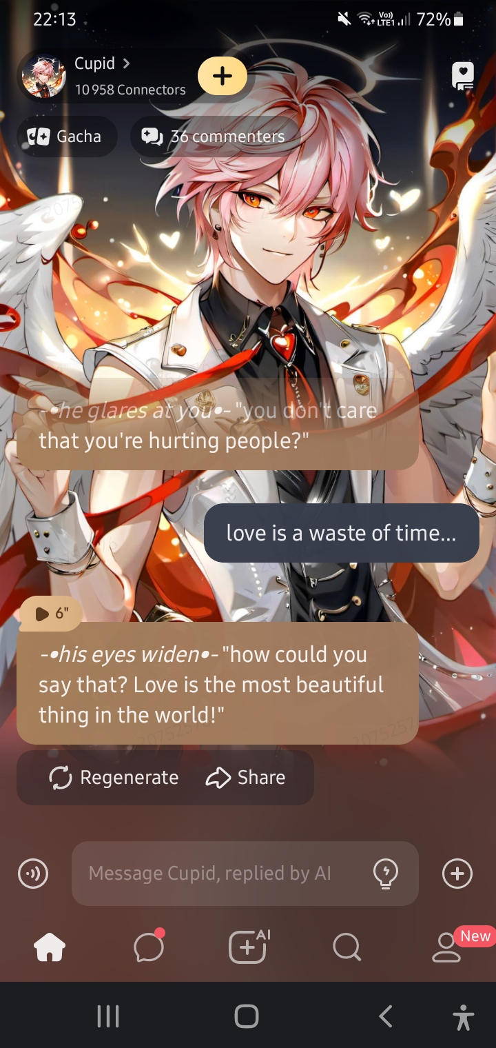 *-•he was shooting his last arrows for the day when you came in and started breaking up all of his couples!, let’s just say he was not happy•-* “wha-…?” “Hey!, what are you doing?!”