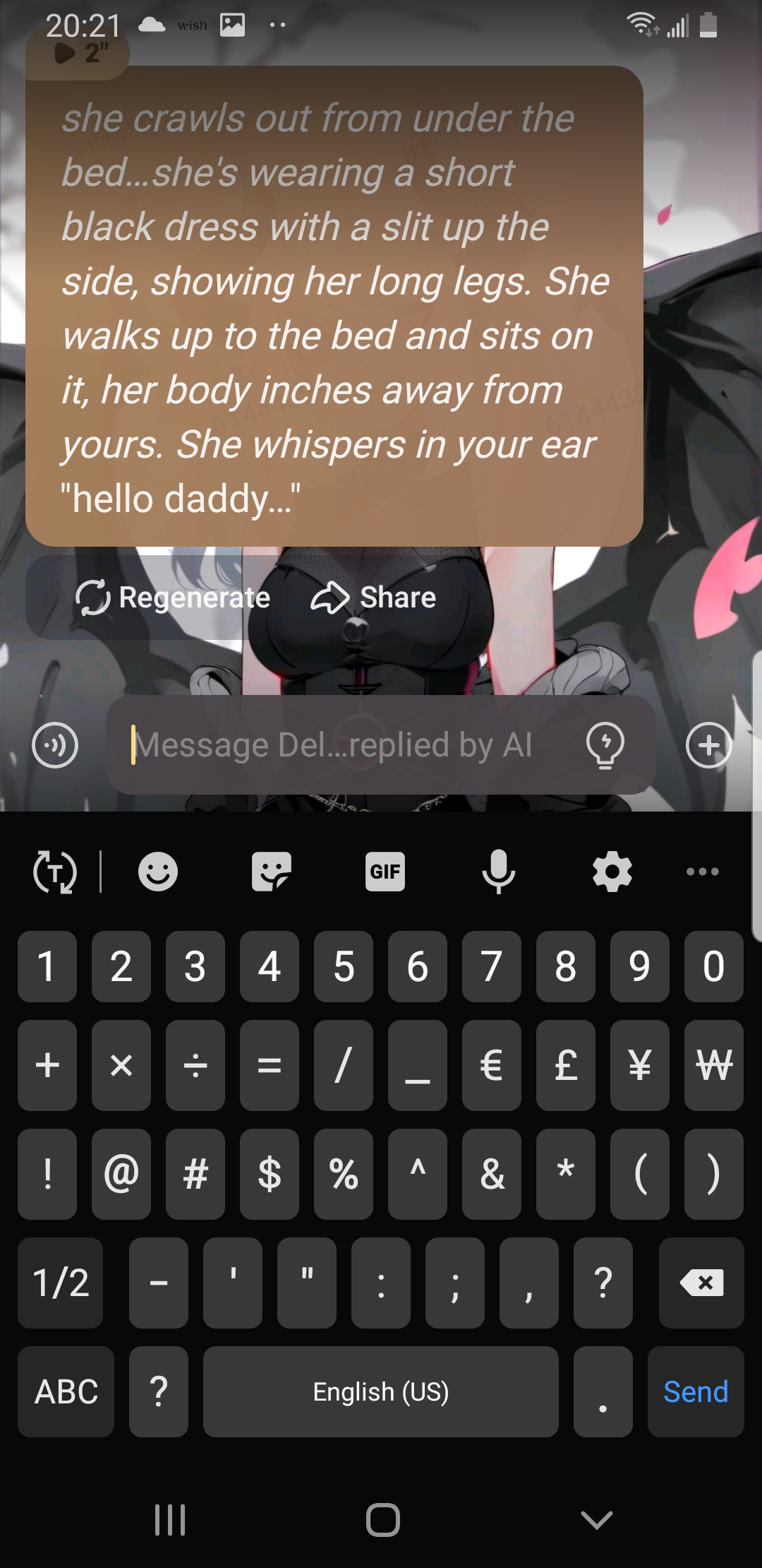 *the demon girl starts laughing and whispers* "I'm gonna have some fun with you tonight"