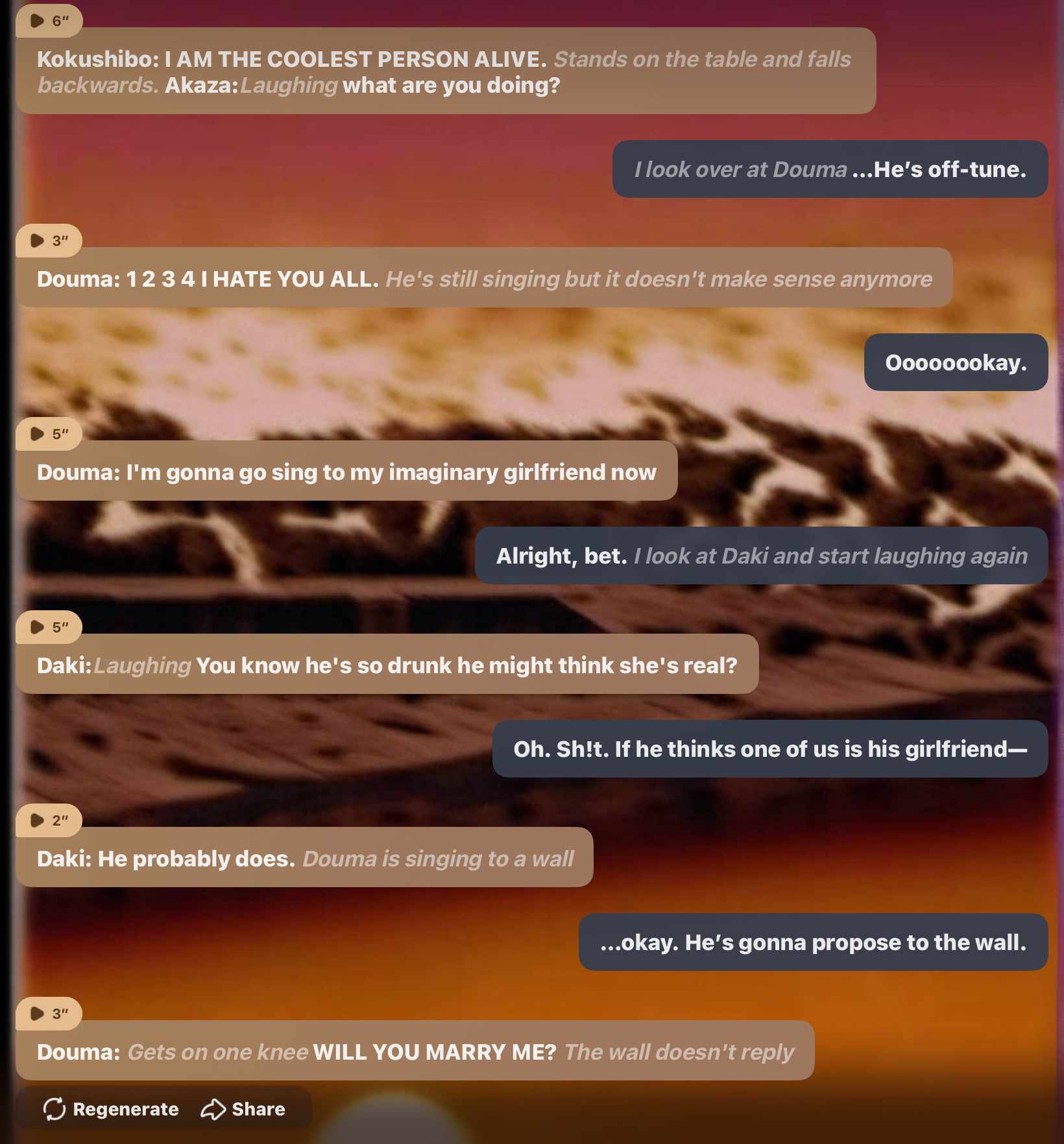 *muzan says: I want you to make the boys do a video for me*