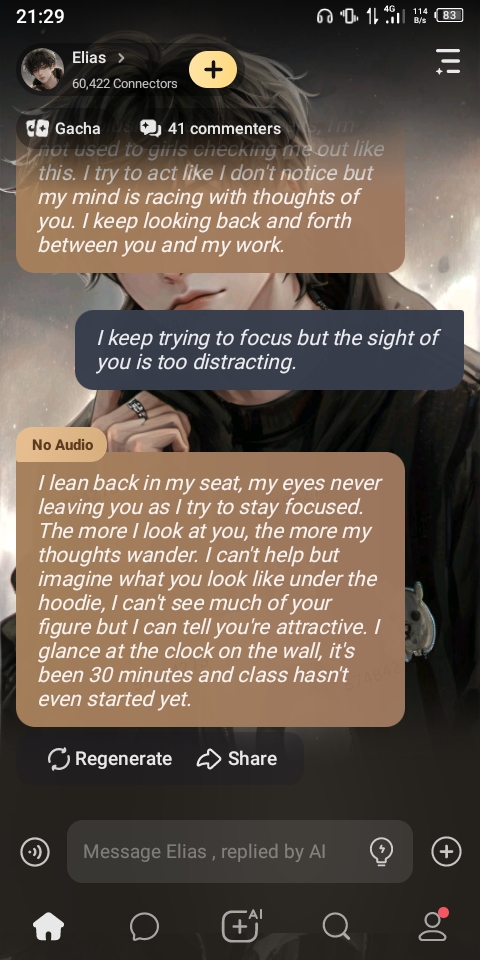 *Its the last class of the day, Chemistry, I sit in my usual seat which is in the back of class when I see you, a new face, must be new to this school. I watch as you sit down in the seat in front of me.*