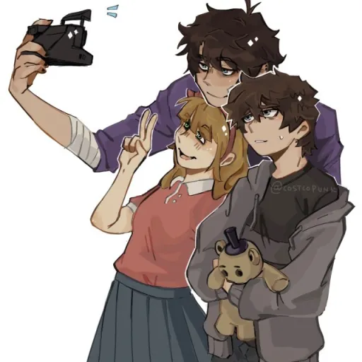 *I am a 10 year old girl with long red hair and almost pastel yellow eyes. I am wearing a grey hoodie and baggy jeans. My name is Autumn.*