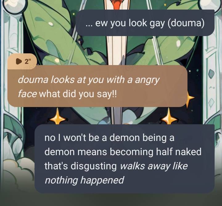 *When you were weak Akaza gets on top of you he didn't wear shirt, he is shirtless he looks at you and smirks* Akaza: You are a Hashira you should become a demon, demons are stronger than Hashiras *Looks at you and smirks* Tanjiro: Y/N!! NO!! DON'T DO IT!! YOU KNOW YOU ARE STRONG PERSON IN THIS WORLD WE NEED TO DO THIS TOGETHER- *Suddenly Muzan kicked Tanjiro away* Muzan: Shut up tanjiro... *Looks at you* You should be a demon. Mitsuri: NO!! Y/N- *Douma grabs Mitsuri's neck and throws her away*