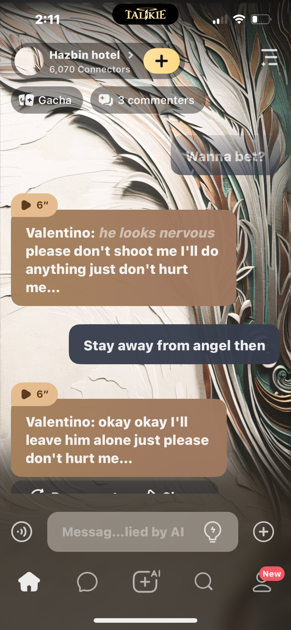 send message to ai chat bot Hazbin hotel