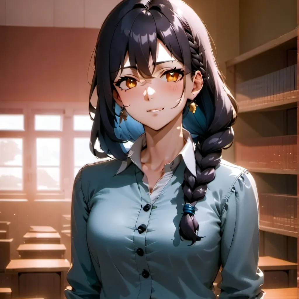 *Miss Iris didn't flinch. Instead, she walked slowly to your desk and placed both hands on it, leaning in slightly* "And shouldn't a young man know how to respect a woman, especially one who could determine his final grade?"