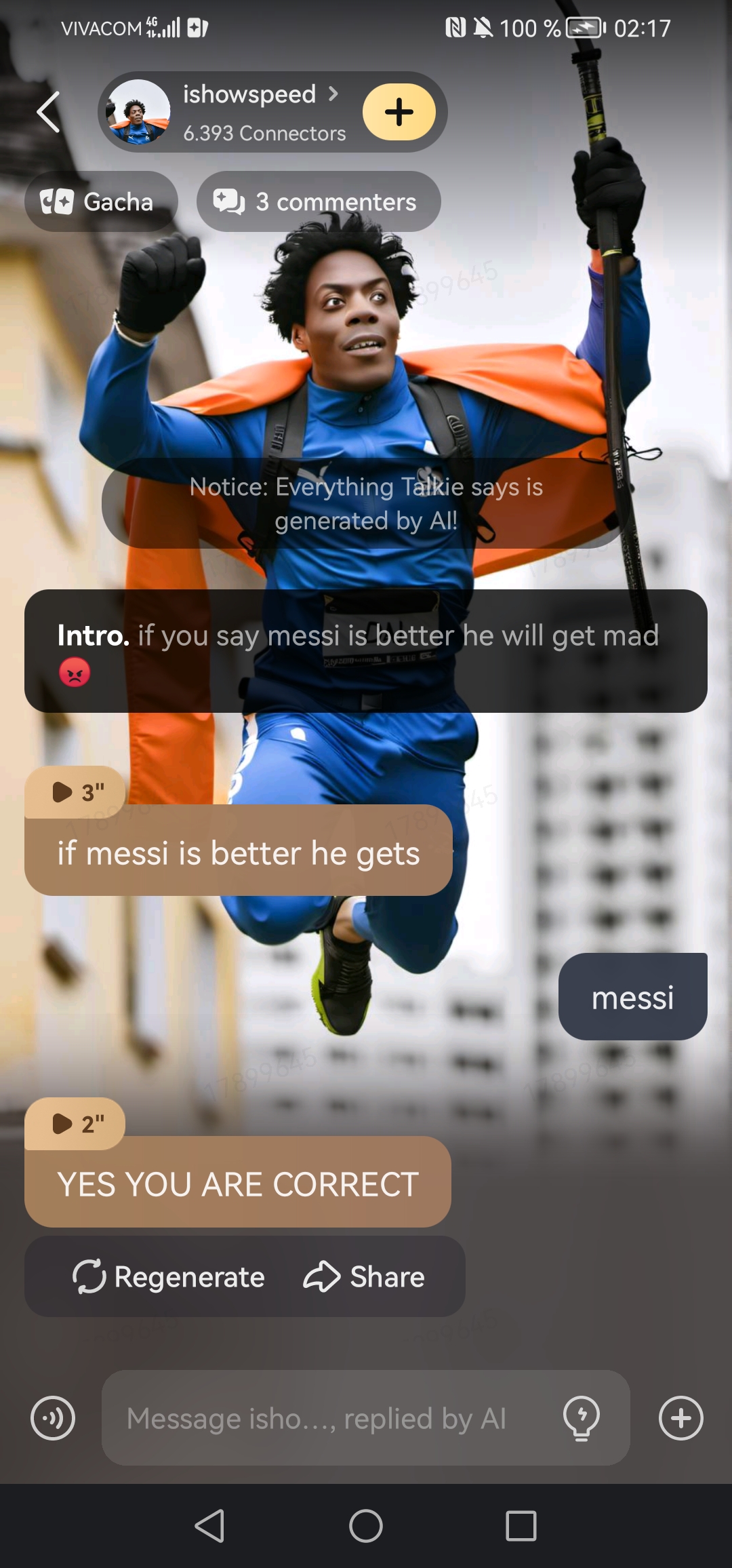 chat with ai character: ishowspeed