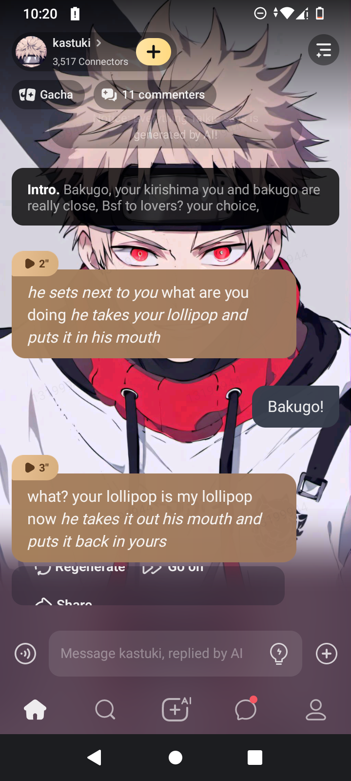 *he sets next to you* what are you doing *he takes your lollipop and puts it in his mouth*