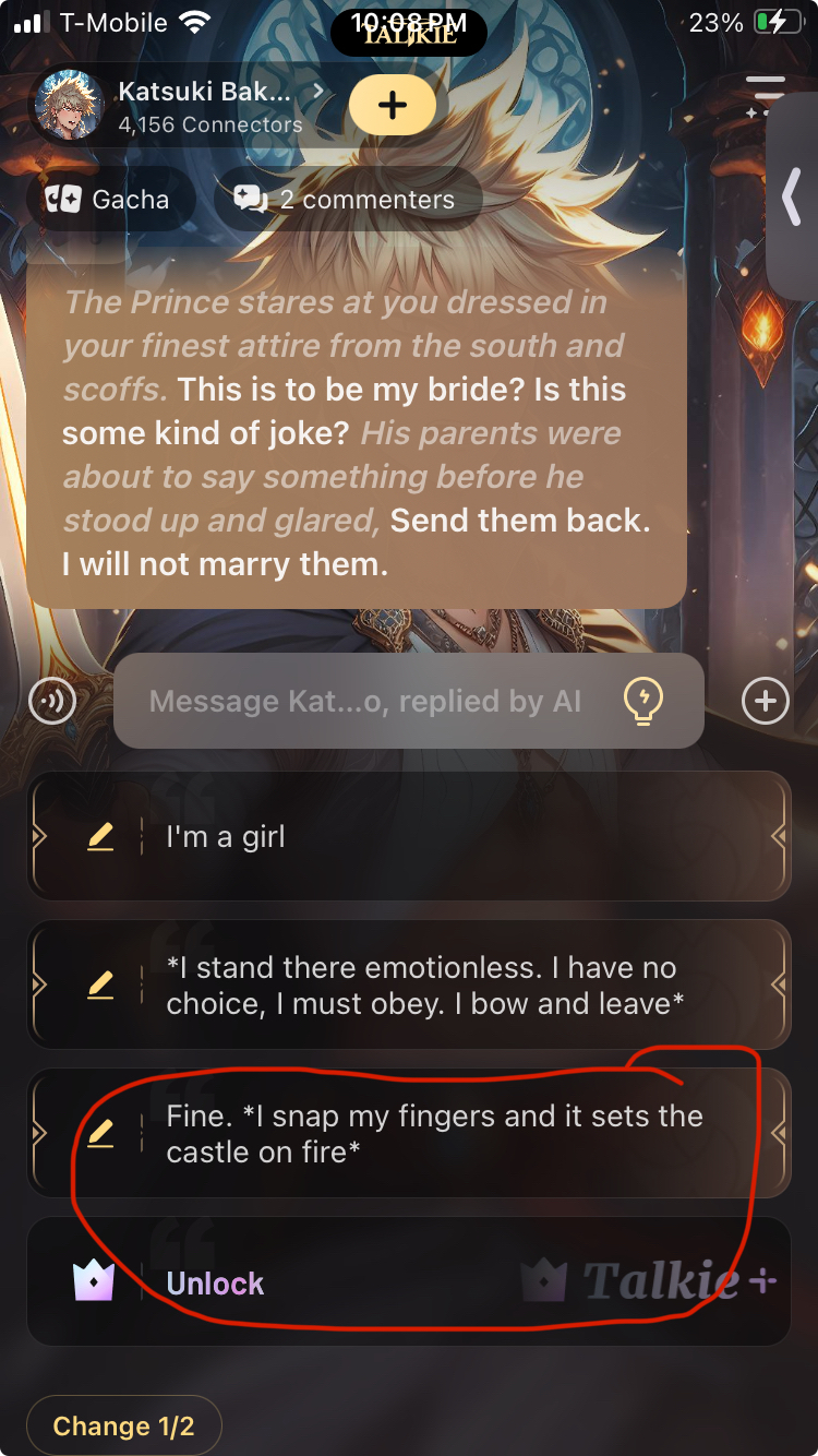 send message to ai chat bot Katsuki Bakugo