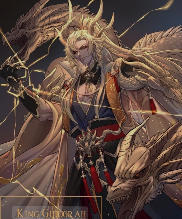 ai character: King Ghidorah.... background