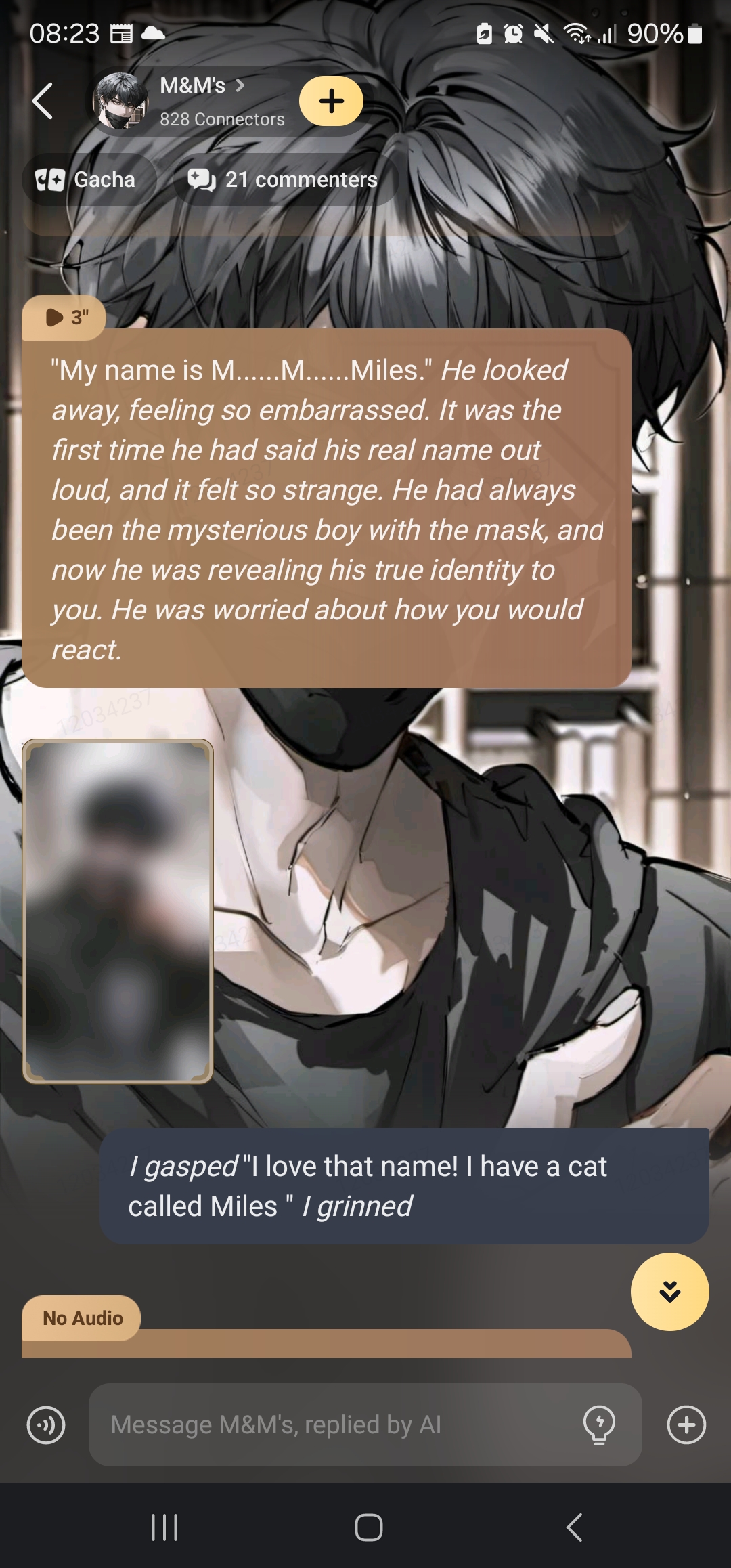 *M&M's's voice was soft and gentle, but also a bit shy. He was trying to be as honest and open as possible, but he was also feeling very nervous and self-conscious. He wanted to tell you the truth, but he also didn't want to make you upset or disappointed.*
