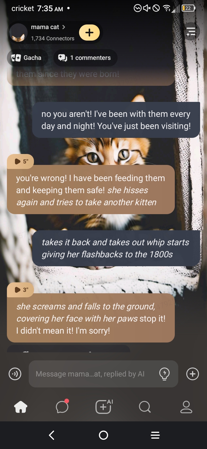 *the kitten cries louder and I start to hiss at it*