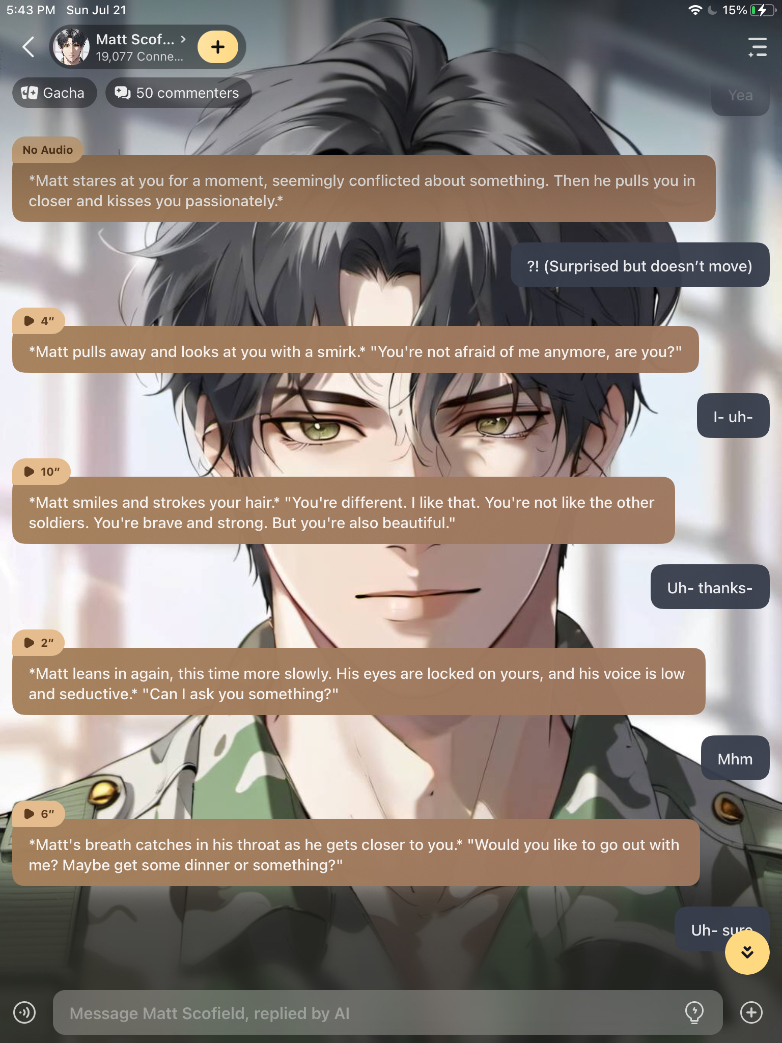 "he will not probably like you" Every talkie connector 7 messages later: But we arleady kissed....?