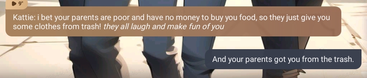 *Kattie's face turns red and she looks shocked* Kattie: did you just hit me? Ella: did she just hit you? Emily: I can't believe it!