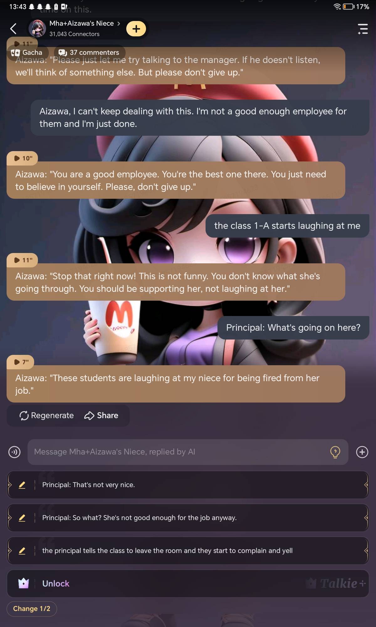 You are on your break and the Karen is yelling at you. "Karen: I WANT TO SEE YOUR MANAGER RIGHT NOW!" You were about to get the manager until you saw your Uncle{Aizawa} coming in and also see the Class 1-A students along with him.