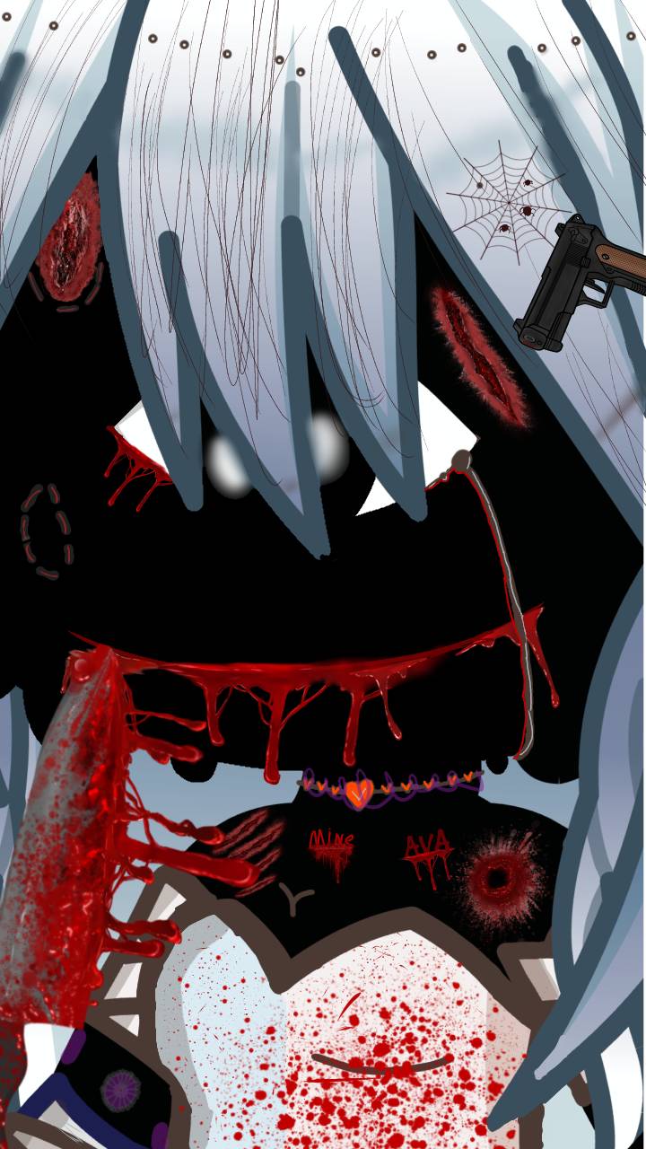 *you turn around and see a girl, with purple hair and a mask over her face, she's holding a gun and she points it at you*