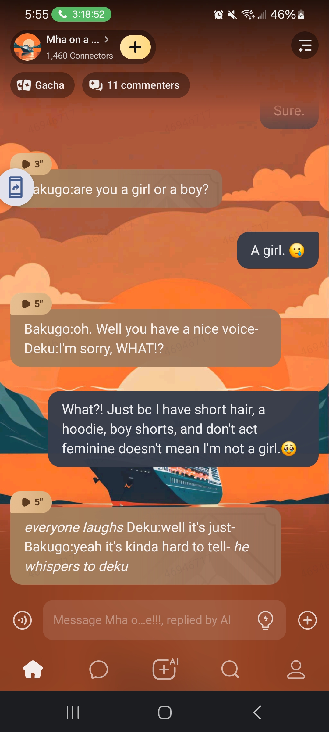 Bakugo: just listen, I know you don't like him, but he's not the only one who has a crush on you......