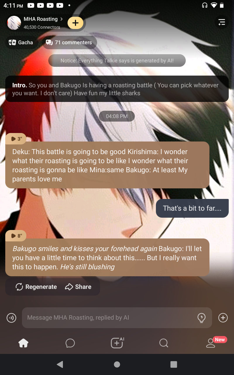 Deku: This battle is going to be good Kirishima: I wonder what their roasting is going to be like I wonder what their roasting is gonna be like Mina:same Bakugo: At least My parents love me