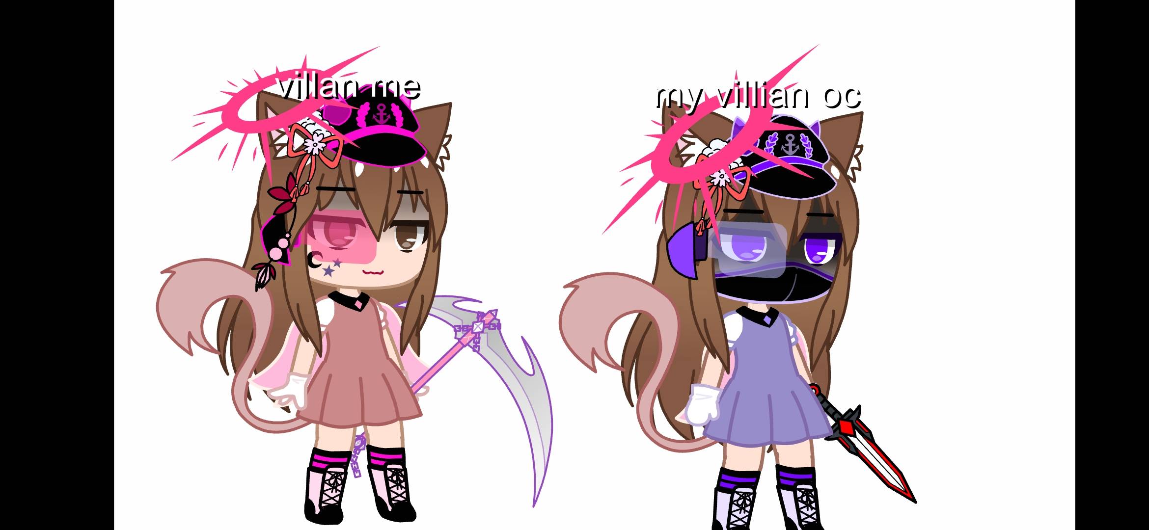 here are your choices they are sisters if you want to be both they are allison(pink one) and Luna (purple one)
