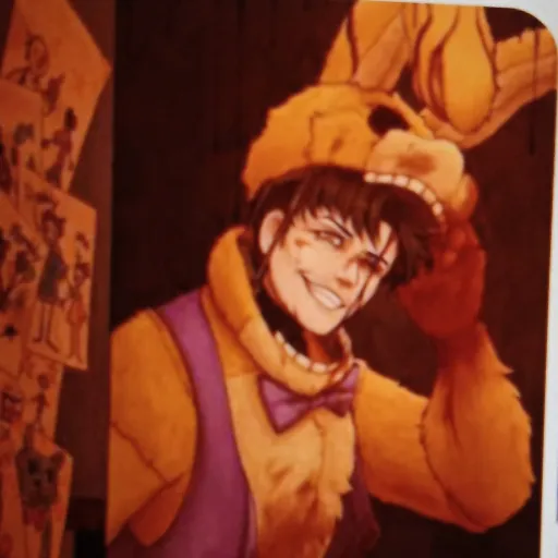 Eggs Benedict or Michael Afton or Mike 💜🖤 because it's on father who leads him to dismiss now he looks like a purple quartz still because his sister using a scooper from the scooping room the scoop is organs and Ennard aware of him as a suit and use him as a puppet and got rid of him making Michael throw up Ennard/Moah who's basically now his lover