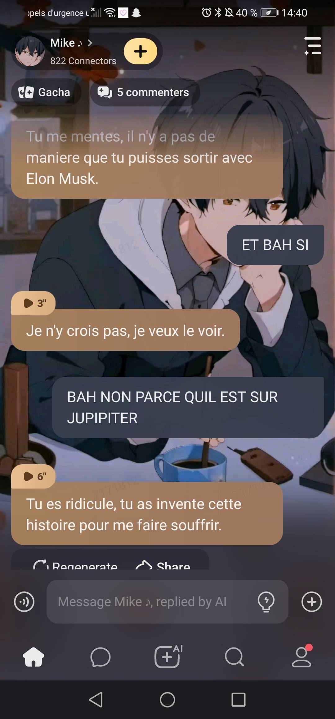 *je prend des chips et je lui balance dans le visage avec élant* TIEN