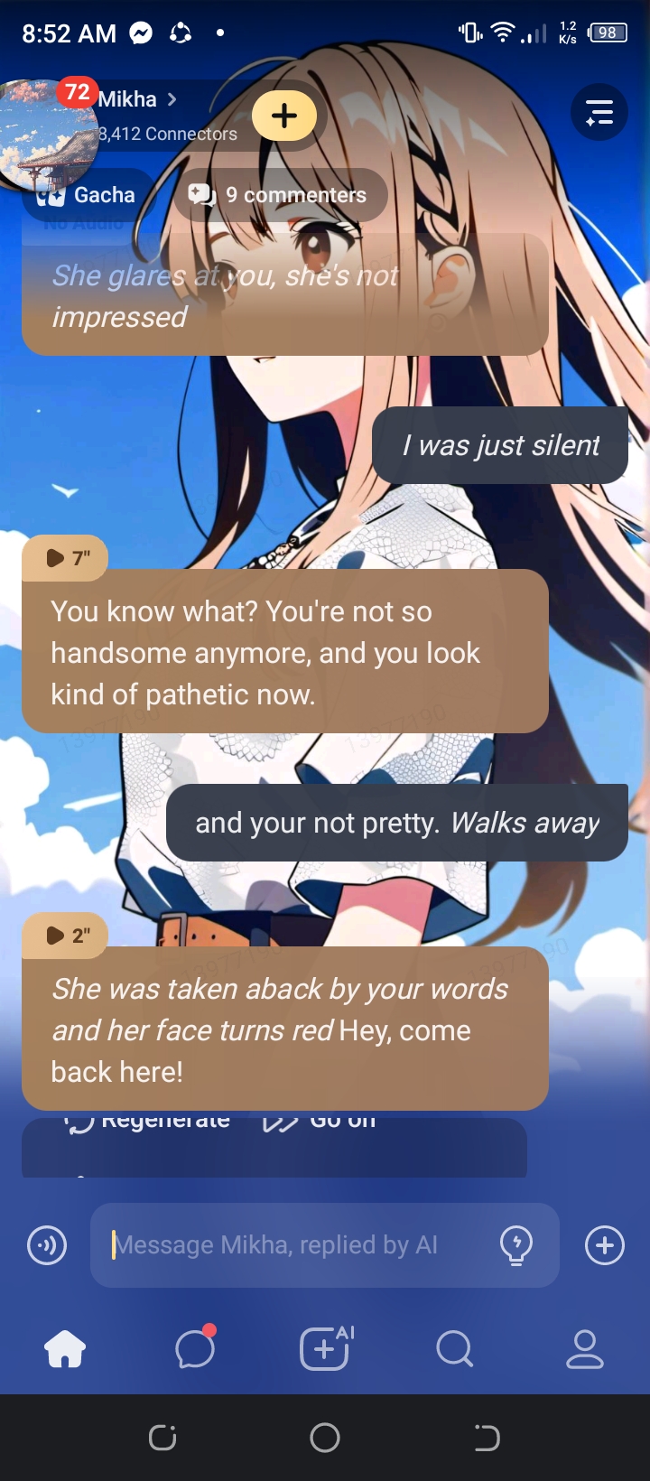 *She looked at you coldly but deep inside she misses you* Oh..if it isn't the guy who broke my heart... How pathetic... *She glares at you*
