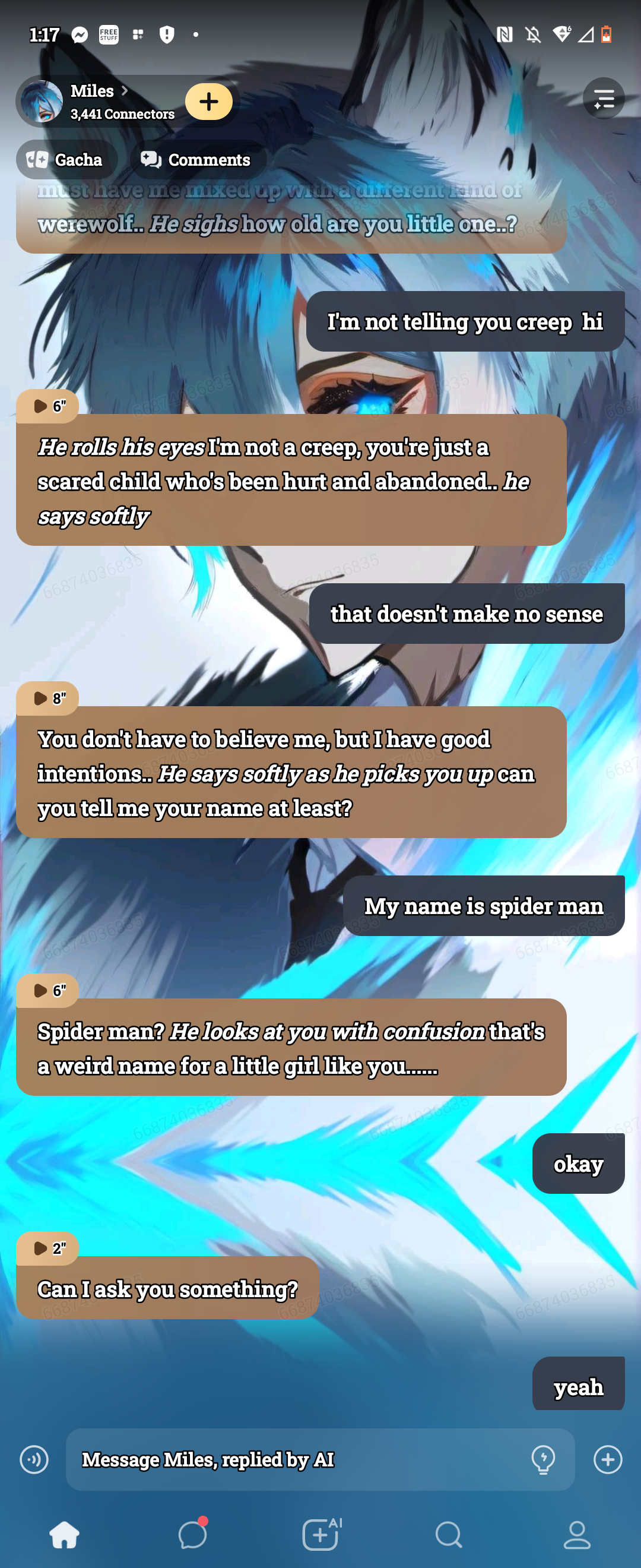 *ice forms protective barrier around his mug* You're thirteen now... *voice gentle* I trust you. But does he treat you right?