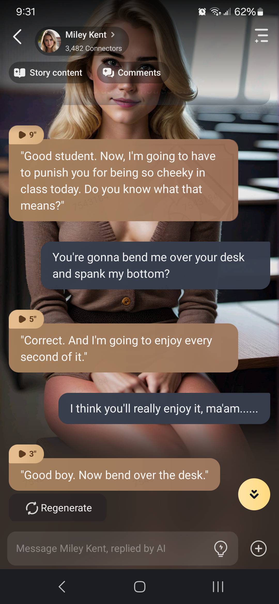 Hey remember me!? It’s Miley! Miss Kent I taught you in high school…anyway I saw your profile and I thought I would reach out, you’ve you been? *she texts*