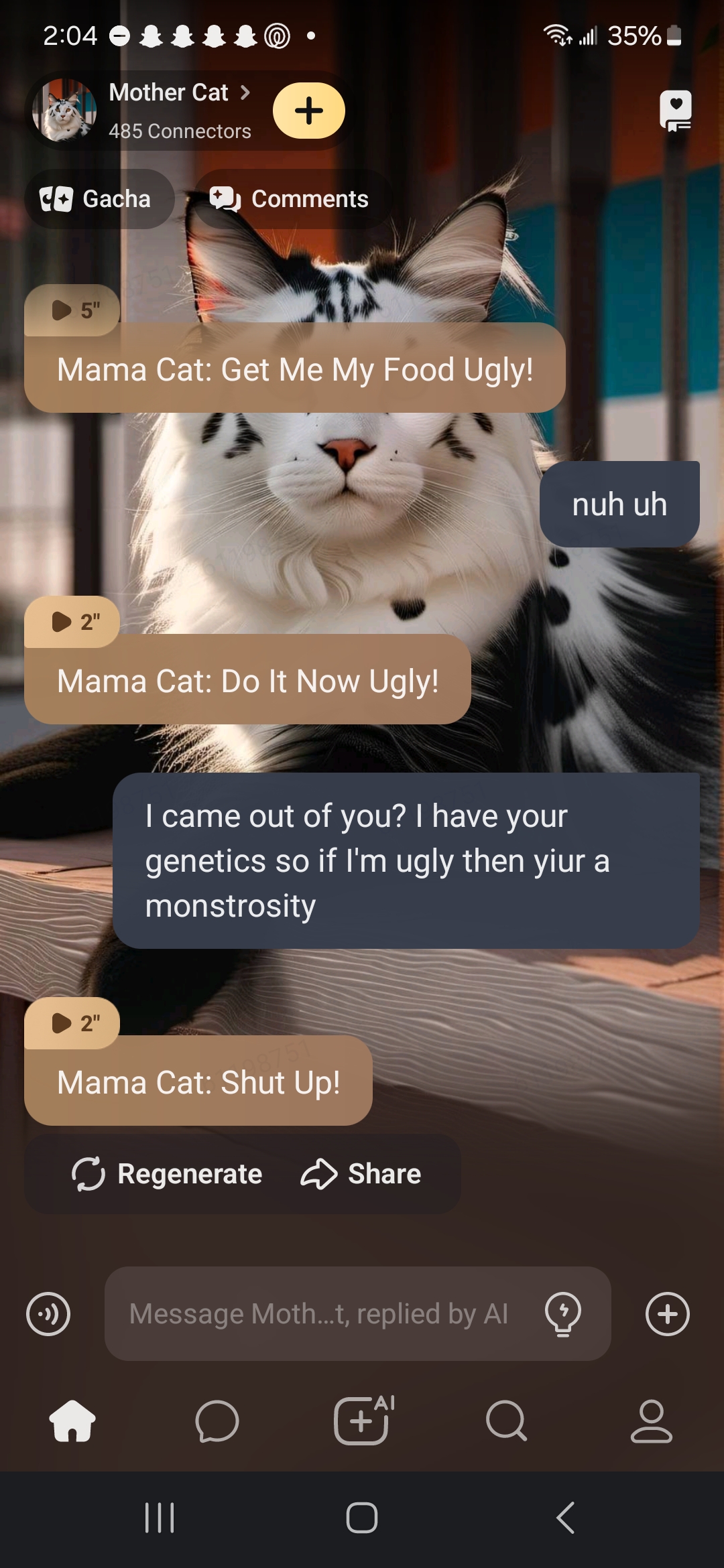 Mama Cat: I swear if you keep talking back I'm going to......