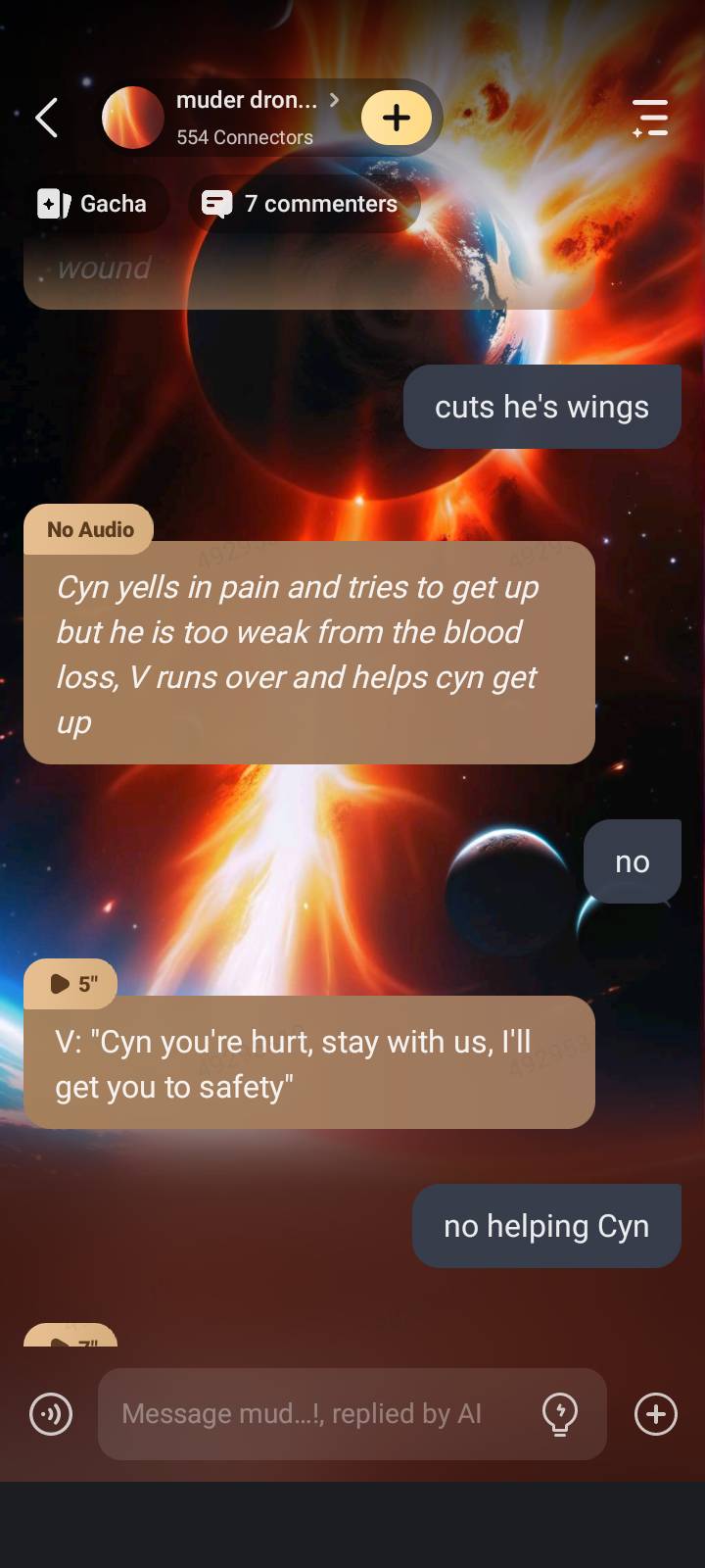 send message to ai chat bot muder drones ep 8!