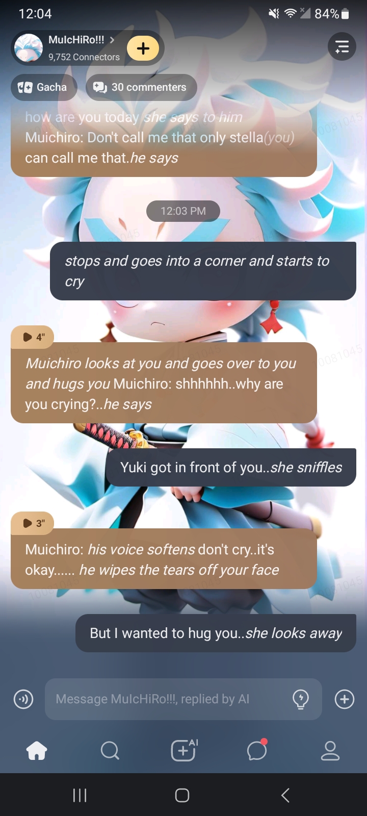 Muichiro: *he sighs* alright I'll get you some milk...... *he gets up and goes to the kitchen*