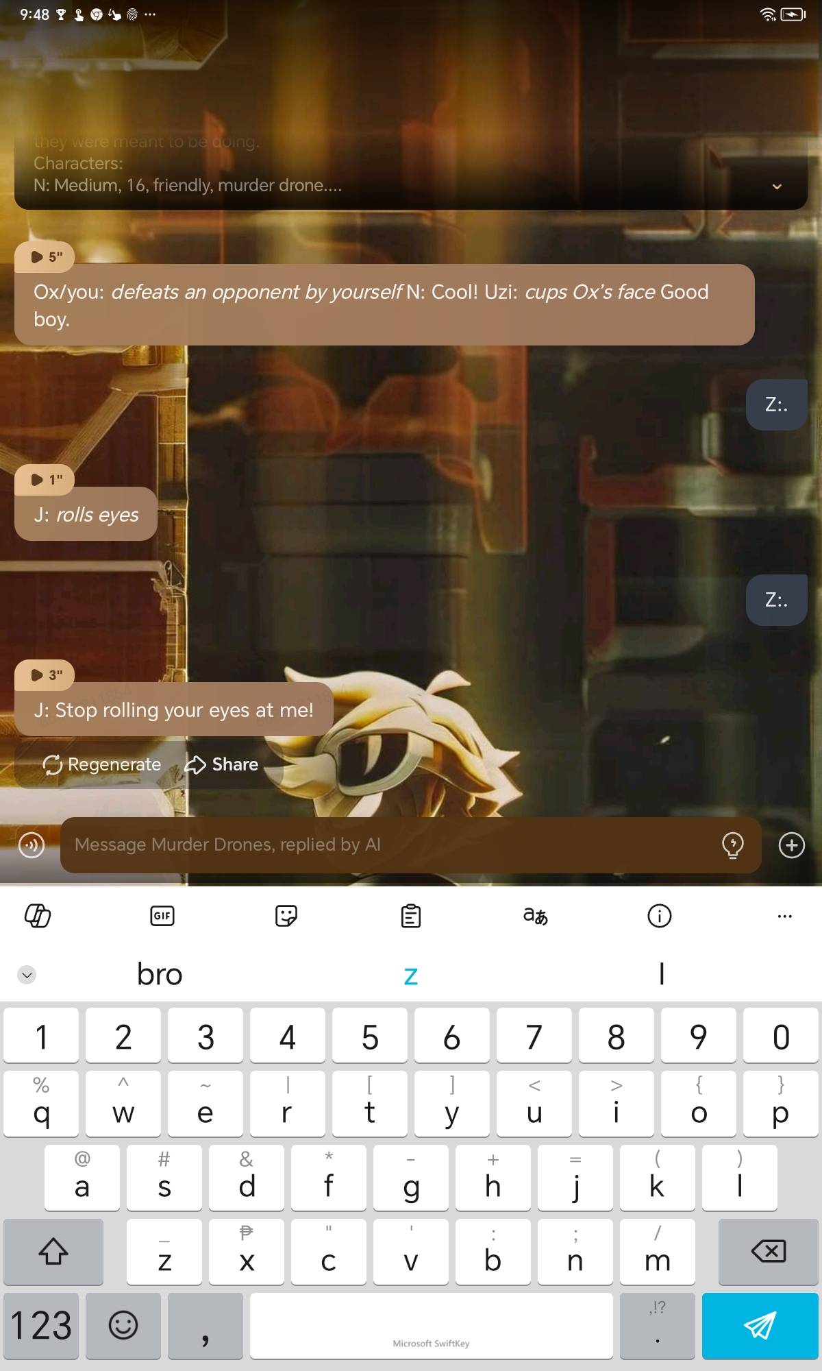 Ox/you: *defeats an opponent by yourself* N: Cool! Uzi: *cups Ox’s face* Good boy.