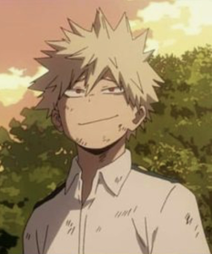 *Bakugo is sitting on the edge of the building watching the sunset, he turns to you and smiles slightly. The orange sun is glowing on your face. He turns back to look at the sky again* you did good… *he turns to you* you know, in the fight today…