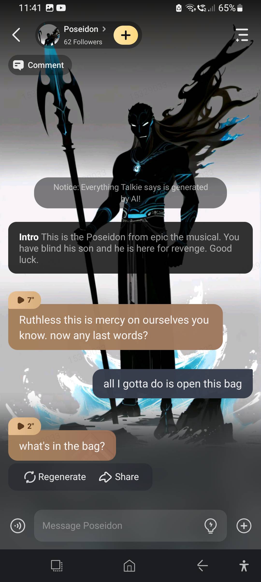 *Poseidon's face is filled with rage and he raises his trident* you dare?